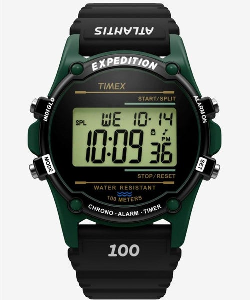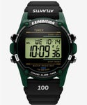 1991年、まだアウトドア向けウォッチの概念が一般的でなかったとき、TIMEXは「EXPEDITION(エクスペディション)」というアメリカ人のアウトドア・ライフスタイルに根ざしたコレクションを発表しました。アトランティスも米国ではのちにEXPEDITIONにカテゴライズされたものの廃番となり、昨年日本企画として待望の復刻を果たしました。TIMEXではこれまでコンラッド・アンカーなど世界的に著名な登山家なども商品開発等に携わったことがあり、その経緯から今シーズンの限定カラーではアウトドアにとどまらず都会的なシーンでも着用できるブラックのストラップを基調に、赤、青、緑、カーキ、紫などの象徴的なカラーリングのケースを組み合わせました。トップリング印字も従来のATLANTISから往年のEXPEDITION表記へと変更し、アイコン機能でもあるインディグロ®ナイトライトを搭載、100m防水にストップウォッチやアラームなど必要充分な機能を備えています。
