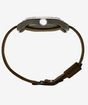 ベトナム戦争時に開発された、戦地での使用に耐えうる耐久性を備えながら修理や電池交換などを必要としない手巻き式のディスポーサブル・ウォッチ(使い捨て時計)は、視認性や堅牢性の高さなど実用性に優れたものでした。戦後は民間でもこれらの時計に必要な機能を兼ね備えたものとして市販品の需要が高まり、TIMEXは1980年代にこの米軍仕様のミリタリーウォッチ「Camper」の販売を始めます。今回の復刻版は1980年代に発売された「Camper」をオリジナルとしたもので、当時の手巻き式ムーブメントが現在は製造できないことからクォーツムーブメントを採用しているものの、ドーム型のプラスチック風防、文字盤やケースなどの外装は3Dプリンタなど現代の技術を駆使し、当時の時計を忠実に再現しています。
