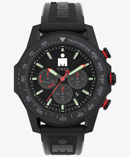 ラギッドな48mmサイズの<アイアンマン アドレナリン クロノグラフ>は、スポーツシーンでの使用感を念頭にしながら、カジュアルシーンでも目を引くディテールに富んだモデルです。 アイアンマンの伝統に倣い100m防水を維持し、タキメーター表示のベゼルとクロノグラフ機能とデイト表示を備えています。 12時位置にはアイアンマンのロゴマークが入る、アナログタイプは珍しいタイメックスのアイアンマン。
