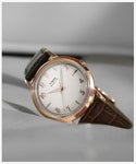 1950年代に誕生した名作「マーリン」をベースに、縁がカーブした凝った作りのボンベダイヤルや立体感のあるインデックスなど、当時のクラシックな魅力はそのままに、内部に精度の高いクォーツを搭載したニューモデルが登場。 オリジナルと同じ34mm径のケースは重くなく装着感が良く、男性でも女性でも手首に収まるサイズ感は視覚的にも◎。細く品のあるシェイプのラグやドーム型のアクリル風防などとあわせ、トラッドにもカジュアルにも幅広いスタイルにマッチするタイムレスなデザインです。