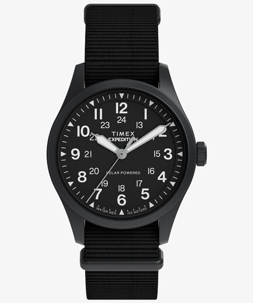 最長4か月稼働するソーラームーブメントを搭載し、電池交換の必要がない「エクスペディション フィールド ポスト ソーラー」は、ミリタリー風のアウトドアウォッチとしてどこへでも連れて行ける、頼れる相棒です。 反射防止サファイアクリスタル、ねじ込み式のリューズと裏蓋を備えた36mmのリサイクルステンレススチールケースに、頑丈なクラウンプロテクターを搭載。 蓄光の針とインデックスが、暗闇でも視認性を確保してくれます。 ※ソーラームーブメント搭載の商品は到着時に作動していない場合がございますが、故障ではありません。お使いになる前に光源下で充電されますと通常通り作動します。