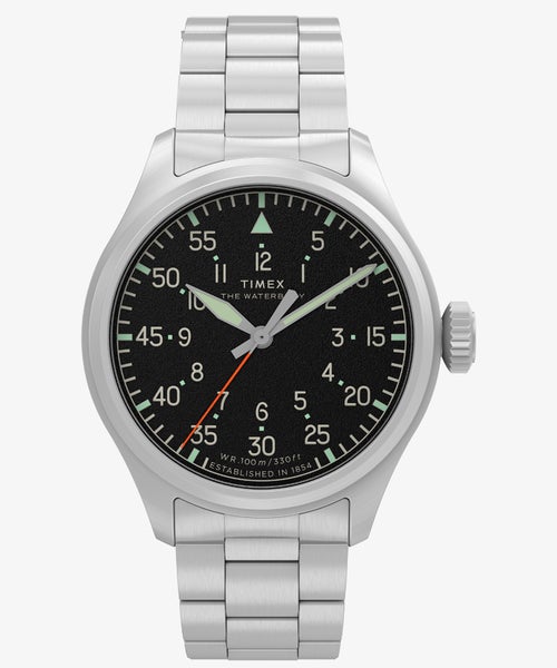 伝統的なパイロットウォッチの実用的なデザインを忠実に受け継いだ<ウォーターベリー>からスリーハンズの新作が登場。 高コントラストの文字盤には、外側の分目盛りと内側の時目盛りが配され、どちらも蓄光塗料が施されているため視認性が向上しています。 シンプルがゆえに際立つディテールの仕上げや素材のグレードの良さ。 時代を超越した耐久性を備え、長く愛用できる時計です。