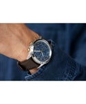 アラビアインデックスを採用したクラシカルなルックスのWaterbury Traditionalは、オリジナルに敬意を払い、1854年創業時のコーポレートロゴを文字盤、リューズ、秒針に施しています。
