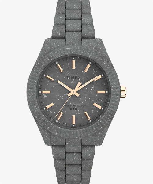 針やリューズ、インデックス以外は全てスイスの『tide ocean material®』社の海洋プラスチックを100%使用した素材を使用。環境に配慮したシリーズです。
