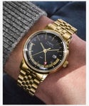 1960年代のクラシカルな雰囲気を持ちつつ、現代的で便利なGMT針を備えたクォーツモデル。