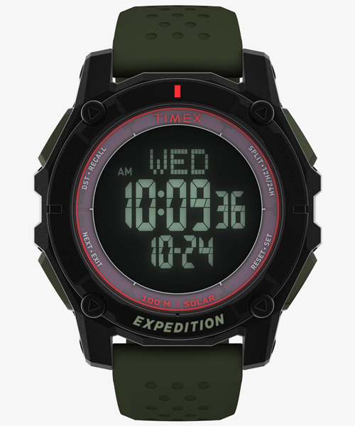 キャンパーやアイアンマンなどのモデルに隠れて密かな人気モデルとなっているのが、ソーラー機能搭載のタイメックス。 カラーリングや軽さなど、国産ブランドにはないデザイン性でも人気ですが、今期はデジタルのソーラーモデルが新登場。 光源があれば光を取り込み充電できるので、スマートウォッチにつきもののバッテリー不足よりも格段に心配が少ないところがウケています。