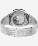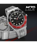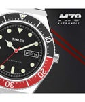 外観はQ TIMEXを踏襲しつつ、モデル名にMechanicalのMを関した「M79」はインデックスや針などのディテールをアップグレード。さらにはムーブメントを信頼性が高く堅牢なMIYOTA製の21石自動巻きムーブメント(パワーリザーブ約40時間)に変更し、ケースバックもシースルーにしました。今シーズンの新色として、“コーク・ベゼル”の愛称で知られるブラックとレッドのツートーン・ベゼルが加わります。ケースはQ TIMEXより2mm拡大した40mm径となり、厚みは14.5mmと程よいバランスを実現。趣のあるドーム型アクリル風防はこのモデルでも健在で、機能面ではデイ・デイト表示、5気圧防水を維持しています。 ※本商品は納品時にBOXを包む白色のカバー(スリーブ)が入荷時期によって付属しない場合がございます。予めご了承くださいませ。