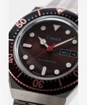 1979年に登場したTIMEXのクォーツモデルを復刻した”Q TIMEX”は、当時のモデルの外観を踏襲したオリジナリティと、その完成度の高さで瞬く間にソーシャルネットワークを中心にファンの間で大人気となりました。 外観はQ TIMEXを踏襲しつつ、モデル名にMechanicalのMを冠した「M79」はインデックスや針などのディテールをアップグレード。さらにはムーブメントを信頼性が高く堅牢なMIYOTA製の21石自動巻きムーブメント(パワーリザーブ約40時間)に変更し、ケースバックもシースルーにしました。 ケースはQ TIMEXより2mm拡大した40mm径となり、厚みは14.5mmと程よいバランスを実現。趣のあるドーム型アクリル風防はこのモデルでも健在で、機能面ではデイ・デイト表示、50m防水を維持しています。