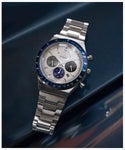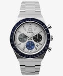 TIMEXのアーカイブを基にデザインされたQシリーズのクロノグラフに、新色が登場。 ヨーロッパの伝説的レースで愛されたモータリングウォッチにインスパイアされた本モデルは、1970年代の象徴的なQ Timexの精神と耐久性を受け継いでいます。 高精度なクロノグラフムーブメントとタキメーターベゼルが、本格的なレーシングウォッチの機能と洗練さを演出。経過時間や平均速度を簡単に計測できます。 ホワイトダイヤルに映えるサブダイヤル、日付機能、立体的なメタリックインデックス、そしてアップデートされたQ Timexロゴが美しく調和しています。 ステンレススチール製のリューズと、リサイクルステンレスを使用したポリッシュ仕上げの40mmケースが、レトロなデザインに現代的な躍動感と耐久性をプラスしています。