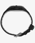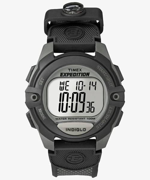 不思議と気になるデジタルなのにアナログ感のあるデザイン。タイメックスが1990年代はじめから作り続けているアウトドアトドア向け<エクスペディション>はアメリカでも人気のシリーズ。こちらは珍しい、ループにアナログのミニコンパスが付いたタイプ。100m防水でアラーム、ストップウォッチやタイマーの他、タイメックスが誇る液晶全面が光るインディグロ?ナイトライト機能も備える。