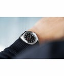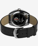 当時のモデルを忠実に復刻した「マーリン」と異なり、ミッドセンチュリーの優れたデザインをベースにモダンに仕上げています。9時位置のサブダイアルは24時間針で午前と午後が分かりやすく、39mm幅のステンレス製ケースは緩やかなクッションシェイプにポリッシュ仕上げとマット仕上げで立体感を演出しています。
