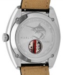 文字盤は高級感のある縦方向のサンレイ仕上げを施し、内部に搭載した日本製自動巻きムーブメントを見ることができるケースバックにはネーミングの由来となったカジキがあしらわれています。