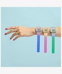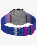 カレンダー機能、ストップウォッチ、液晶面が光るインディグロ®ナイトライト、30メートル防水、アラームなど日々の生活に便利な機能を搭載。モダンでなめらかなシルエットのステンレススチール製ケースに、きれいなグラデーション加工された樹脂ストラップの組み合わせもポイントです。