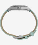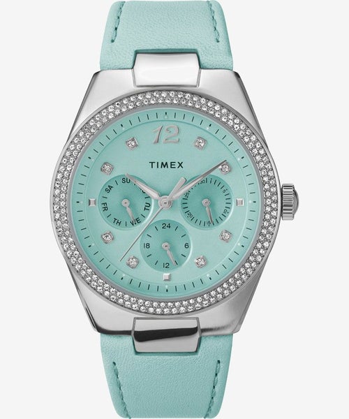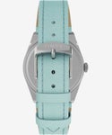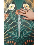 涼しげで、清純さや誠実さを表すといわれるブルーは、「花嫁が結婚式で身に着けると幸せになる」と言い伝えられている人気カラー。誰でも取り入れやすいブルーを基調に、ノーブルなクリスタルをベゼルやインデックスに配したSimone/シモーネ。女性らしい線を描くバレルシェイプのケースに細めの時分針を合わせるなど、ディテールも美しく、日ごろ便利なカレンダー機能も備えています。