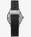 2023年12月6日発売 時計Begin掲載 ※次回入荷予定なしとなります。 2024年に創業170周年を迎えるタイメックス。その長い歴史において、過去にはアメリカ製やイギリス製のほか、1970年代にはスイス製機械式ムーブメントを搭載したタイメックス製品が存在しました。 その自社のリッチなヒストリーと時計メーカーとしてのプライドを表現するのが、これまでスウォッチ、モバードグループやセイコー、シチズン、セクター、ノーティカなどのデザインも手掛けたタイメックス・グループのクリエイティブ・ディレクターであるジョルジオ・ガリの名を冠した本シリーズ。 ケースは316Lステンレススチールを射出成型した独自のスケルトン仕様で、インナーケースとケースバックには軽くて耐久性のあるチタン素材を用いています。 ドーム型のサファイアクリスタル風防から見えるオニキスブラックの文字盤にはリング状のステンレススチール製アワーマーカーが備わり、美しいドーフィン型の針が時刻を指し示します。 ムーブメントはスイス・セリタ製の26石、41時間パワーリザーブを採用、文字盤には厳格な基準をクリアすることで掲げられるSWISS MADEの文字が入ります。ラバー製ストラップはステンレス素材バックルの開閉システムが採用され、スマートな印象を与えます。 時計の良し悪しを左右する文字盤のTIMEXロゴバランスも新たに整えられ、一般的なタイメックス製品と一線を画したデザイン性が込められています。プロダクトとデザインに対するこだわりはモノクロームにまとめられたパッケージにも表れ、「ジョルジオ・ガリ S2」をより特別なプロダクトにしています。