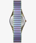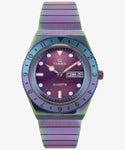 メタル素材に加工を施した独特のカラーリングが特徴の。通常モデルより2mm小さい36mmサイズで、ユニークなカラーリングが特徴。 メタルと樹脂のリンクを交互にあわせたブレスレットは、工具なしで調整できる”Perfect Fit?”を採用。
