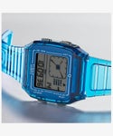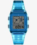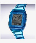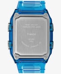 「Q LCA Transparent」は1980年代初頭に発売されたデジタル表示とアナログ表示を兼ね備えた「Q TIMEX LCA」をベースに、ノスタルジックながらも新しさを感じるフォルムや機能はそのままに、新たにスタイリッシュな半透明の樹脂素材をケースやストラップに採用しました。