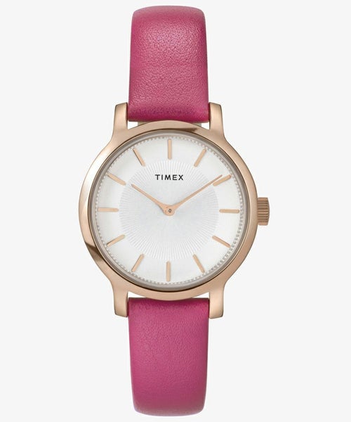 美しいシルエットの31mmケースは小さすぎず大きすぎず、好みに合わせたカラフルなストラップで手首周りやスタイリングのアクセントに。