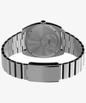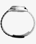 それまで時計のシェイプといえば丸か角、という常識が覆された1970年代。加工技術の進歩などもあり、ユニークなアイデアや実験的なデザインが生まれ多くの名作時計が生まれました。 タイメックスもその例に漏れず、こちらはミッドセンチュリー期を経た1975年、当時まだ新しかったクォーツラインから、品番969512として発売されたモデルを復刻。クッションシェイプと呼ばれる37mm幅のステンレススチール製ケースにブレスレットを合わせ、針の根元を文字盤と同色にすることで時針、分針、秒針が浮いているように見える“フローティング”というギミックのデザインを採用。そのコンセプトと見た目から、ファンの間では<ミステリーダイアル>のニックネームで呼ばれています。 どこかヴィンテージのようでいて新しさも感じられる、タイメックスのアーカイブから選ばれたユニークなモデルです。 ※ベルトのサイズ調整は専用工具が必要となるため、お客様ご自身での作業はお控えください。ベルト調整が必要な場合は当ページ下部の「ベルト調整のご依頼方法について」をご参照の上、弊社サービスセンターまでご依頼下さい。