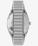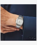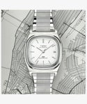 ※再入荷予定ありの商品となります。再入荷通知を希望されるお客様は「再入荷お知らせ」の申込みをお願いいたします。 昭和時代の洋画や当時のウォールストリートの金融マンがしていそうな、ブラウン管TVをかたどったシェイプが特徴のモデル。 1980年代は明るい色にアンコンのスーツやデニムにシャツを合わせるなど、メンズファッションに革新が起きたことも影響し、このモデルも1983年のTIMEX本国の総合カタログでドレス向けモデルとして紹介されています。 このモデルは<リイシュー/復刻>シリーズとして初めて、オリジナルが自動巻きのモデルの復刻となります。シンプルに見えてじつは凝った作りのケースはいま世界的にトレンドとなりつつある小径の34mm幅、文字盤はケースと同色のシルバーにバーティカルなサンレイ仕上げを施しています。 奇しくも80年代バブル期のファッションやアイテムも再び注目を集めるいま、こうしたアーカイブが元ネタのモデルを現代のムーブメントと外装で楽しめるのは嬉しいポイントです。 ※腕回りサイズ:最小12.5cm~最大22.0cm ※裏蓋はスクリューバック(ねじ込み式)のためロゴの回転具合は写真と異なります。予めご了承くださいませ。 ※コマの追加対応は不可となります。あらかじめご了承下さい