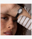 ミッドセンチュリー期のアメリカでデザインされた<キャバティナ>がリニューアル。丸みを帯びた小さめのケースはエレガントで、女性の腕元にしっくり収まるサイズ。ガラス面はほんのりふっくりとしたドーム型で女性らしいシェイプを演出、文字盤のローマンインデックスもノーブルな印象を与えます。