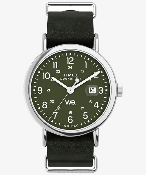 カジュアルに使える評判で、発売から10年以上を経たいまでもトップセラーのひとつ<ウィークエンダー>。性別や年齢を問わず似合ってしまうサイズ感と汎用性の高いデザイン、珍しい真鍮をケース素材につかうことで程よく重量感があり、暗所で文字盤が光るインディグロ®ナイトライトを搭載している点も人気の理由です。 その<ウィークエンダー>がリニューアルし、初めてモデル名が文字盤に入り、3時位置には拡大窓の付いたデイト表示が加わり利便性が増しました。定番的な人気の40mmサイズ、中でもネイビー x ブラウンの組み合わせがニューモデルでもラインナップ。さらに環境に優しいプロセスで作られたサステナブルレザーをストラップ素材に採用。 発売当初から伝統の創業地が真鍮加工で栄えた歴史から真鍮製ケースを維持し、見やすいダイアルデザインはフォントを刷新。そしてタイメックスの代名詞的機能でもあるインディグロ®ナイトライトも当然継承しています。 シンプルがゆえに誤魔化しのきかない定番アイテムこそ、ブランドの真価が問われる。新しい<ウィークエンダー>、ぜひお試しください。