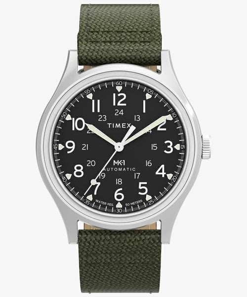 ミリタリーウォッチの永世定番<キャンパー>から派生したMK1。 40mmサイズのSSケースに日本製自動巻きムーブメントを搭載し、文字盤デザインも一新されたニューモデルが登場です。 ストラップには高い耐久性をもつコーデュラ素材を用いています。