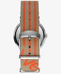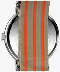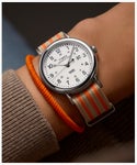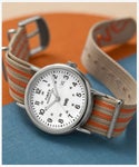2024年に新たに加わったウィークエンダーの40mmモデル。 従来の定番モデルからデザインを一新、拡大レンズの付いた日付やケースも新しくなり、文字盤にはアイコニックな「we」ロゴが刻まれています。 2025年の春夏は、爽やかなストライプ模様がアクセントの2色が新たにコレクションに加わりました。