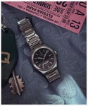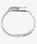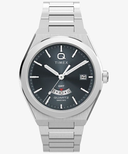 <Q Timex Continental>は、ビンテージの洗練を加えた新たなQ Timexモデルとして登場。デュアルタイム機能を搭載した滑らかなデザインにGMT機能と、Timexならではのスタイルを融合させました。
