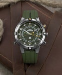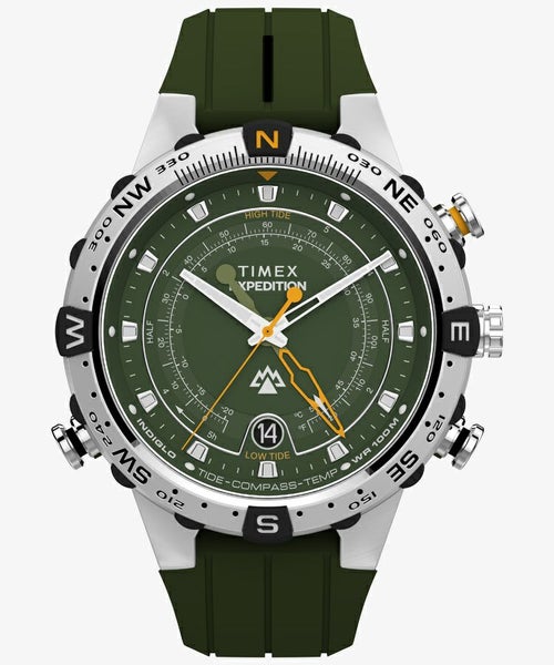 潮汐・温度・コンパスをひとつの針で表示できる独自の高性能ムーブメントを搭載した、アメリカ本国でもロングセラーの「エクスペディション タイド-テンプ-コンパス」。 デジタルでなくあえてアナログで複雑な機能を操作、表示できるスペックは、ガジェット好きの心をがっちり掴みつつ本格ギアとしても長年使われています。 45㎜サイズのケースは環境に配慮した再生316Lステンレススチールを採用、100m防水で錆や腐食に強い耐性を持っています。 このカラーリングは2025AWシーズンのニューカラーです。