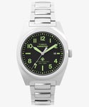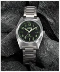 真鍮にコーティングを施した39mmサイズのケースに、蓄光針やデイト表示、視認性の高いダイヤルを搭載。アウトドアやアクティブなシーンはもちろん、街中やオフィスでも使える1本です。