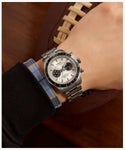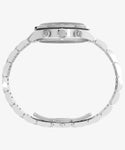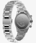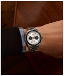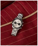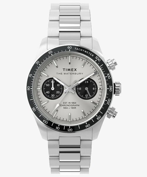 いつの時代も人を惹きつけるツーカウンタークロノグラフ。その出来を左右するのがケースシェイプやデザインのまとまり。 時計デザインに長く携わってきたジョルジオ・ガリが手掛けた<ウォーターベリーヘリテージクロノグラフ>は、タキメーターベゼルを備えたクロノグラフとタイムレスなデザインを融合させたモデルです。 39mmサイズのステンレススチールケースには縦方向のブラッシュ仕上げが施され、ほんのりカーブを描くミネラルガラスクリスタルには反射防止加工が施されています。 蓄光塗料を施した針により視認性を向上させ、立体的なインデックスやリューズとプッシャーの精巧なディテール、そして工具不要でサイズ調整が可能な<パーフェクトフィット>搭載のステンレススチールブレスレットなど、高いクオリティを手に感じられるニューモデルです。