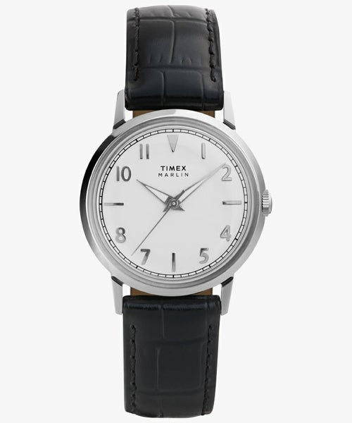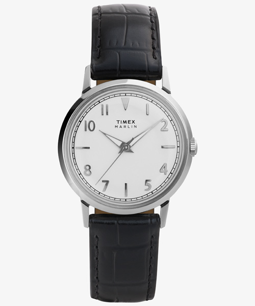 1950年代に誕生した名作「マーリン」をベースに、縁がカーブした凝った作りのボンベダイヤルや立体感のあるインデックスなど、当時のクラシックな魅力はそのままに、内部に精度の高いクォーツを搭載したニューモデルが登場。 オリジナルと同じ34mm径のケースは重くなく装着感が良く、男性でも女性でも手首に収まるサイズ感は視覚的にも◎。細く品のあるシェイプのラグやドーム型のアクリル風防などとあわせ、トラッドにもカジュアルにも幅広いスタイルにマッチするタイムレスなデザインです。