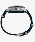 いつの時代も人を惹きつけるツーカウンタークロノグラフ。その出来を左右するのがケースシェイプやデザインのまとまり。 時計デザインに長く携わってきたジョルジオ・ガリが手掛けた<ウォーターベリーヘリテージクロノグラフ>は、タキメーターベゼルを備えたクロノグラフとタイムレスなデザインを融合させたモデルです。 39mmサイズのステンレススチールケースには縦方向のブラッシュ仕上げが施され、ほんのりカーブを描くミネラルガラスクリスタルには反射防止加工が施されています。 蓄光塗料を施した針により視認性を向上させ、立体的なインデックスやリューズとプッシャーの精巧なディテールなど、高いクオリティを手に感じられるニューモデルです。