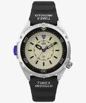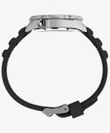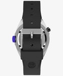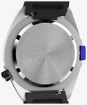 米国の著名時計メディア「Dimepiece」の別注コラボレーション。 Timex、Dimepiece創設者のブリン・ウォルナー、そしてヴィンテージ・キュレーターであるアラン・ベッドウェルがアーカイブから見つけて復刻したい!という声を上げたことから誕生したこのモデルは、90年代のプレップスタイルに新たな解釈を加え、洗練された現代らしいサイズ感にアップデートした自信作です。 この時計の特徴は、男性でも女性でも使いやすい36mmの振りなサイズ、4時位置に配置されたリューズ、そしてクリームとブラックの文字盤による、クリーンでコントラストの効いたデザイン。 暗所の視認性を高めるため、INDIGLOバックライトを搭載し、9時位置のケース側面には、Dimepieceのブリンのシグネチャーカラーともいえるパープルに染められたプッシャーを配置。秒針とインデックスにも同じ鮮やかなパープルを採用し、デザインの統一感を演出しています。 さらに、ブランドロゴ入りの合成ラバーストラップ、回転式トップリングと100メートルの防水機能を備え、時計が初めてという方でも普段からつける方にも愛される、タイムレスな1本が完成しました。