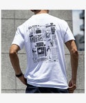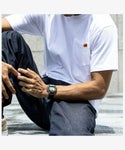 TIMEXとUNIVERSAL OVERALLの昔の広告などで使用されていたグラフィックをマッシュアップしバックプリントした1枚。TIMEXのグラフィックは、実際に使用されていた活版印刷の鉛の原板2枚から抽出した、珍しいグラフィックを採用。 TシャツのボディはUNIVERSAL OVERALL製の綿100%しっかりとした生地で、透け感が気にならず、フロントの左胸にポケットがあります。身幅にゆとりを設けながら着丈は長すぎない、バランスの良いビッグシルエットです。