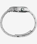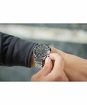 「コンプレッサーケース」と呼ばれるインナー回転ベゼルを機能備えたモデル。インナー回転ベゼルを採用することでエレガントな見た目を実現。 立体的なインデックス「アプライドインデックス」には蓄光素材を配し、秒針と2時位置のリューズに配した落ち着いたグリーンのアクセントカラーが華を添えます。100m防水。 インナーベゼルが回転する “コンプレッサーケース” 「コンプレッサーケース」 は1950年代にスイスのケースメーカーEPSA社が開発し広く普及した機構です。2時位置のリューズを回してケース内部のインナーベゼルを操作する仕様が特徴です。ケースにかかる水圧を利用し、水深が深くなるにつれて密閉度を高めて防水性を保ちます。 ※一部時計専門店およびブランド公式オンラインストア限定となります。