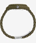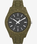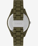 タイメックス社のこだわりは、質を維持しながらもあえて素材の仕上げを均一にせず細かい粒を残すことで一つひとつの商品の表情に差を設けた点です。時計としての機能と品質を維持しながら環境問題などへの意識が高い現代のユーザーに向けた、新しいプロダクトをお楽しみください。