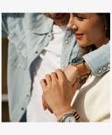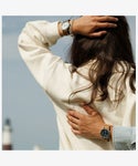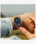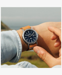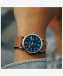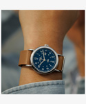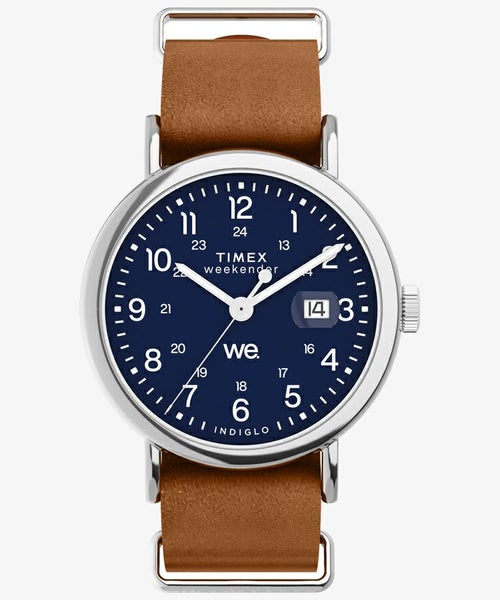 カジュアルに使える評判で、発売から10年以上を経たいまでもトップセラーのひとつ<ウィークエンダー>。性別や年齢を問わず似合ってしまうサイズ感と汎用性の高いデザイン、珍しい真鍮をケース素材につかうことで程よく重量感があり、暗所で文字盤が光るインディグロ®ナイトライトを搭載している点も人気の理由です。 その<ウィークエンダー>がリニューアルし、初めてモデル名が文字盤に入り、3時位置には拡大窓の付いたデイト表示が加わり利便性が増しました。定番的な人気の40mmサイズ、中でもネイビー x ブラウンの組み合わせがニューモデルでもラインナップ。さらに環境に優しいプロセスで作られたサステナブルレザーをストラップ素材に採用。 発売当初から伝統の創業地が真鍮加工で栄えた歴史から真鍮製ケースを維持し、見やすいダイアルデザインはフォントを刷新。そしてタイメックスの代名詞的機能でもあるインディグロ®ナイトライトも当然継承しています。 シンプルがゆえに誤魔化しのきかない定番アイテムこそ、ブランドの真価が問われる。新しい<ウィークエンダー>、ぜひお試しください。