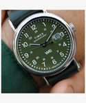 カジュアルに使える評判で、発売から10年以上を経たいまでもトップセラーのひとつ<ウィークエンダー>。性別や年齢を問わず似合ってしまうサイズ感と汎用性の高いデザイン、珍しい真鍮をケース素材につかうことで程よく重量感があり、暗所で文字盤が光るインディグロ®ナイトライトを搭載している点も人気の理由です。 その<ウィークエンダー>がリニューアルし、初めてモデル名が文字盤に入り、3時位置には拡大窓の付いたデイト表示が加わり利便性が増しました。定番的な人気の40mmサイズ、中でもネイビー x ブラウンの組み合わせがニューモデルでもラインナップ。さらに環境に優しいプロセスで作られたサステナブルレザーをストラップ素材に採用。 発売当初から伝統の創業地が真鍮加工で栄えた歴史から真鍮製ケースを維持し、見やすいダイアルデザインはフォントを刷新。そしてタイメックスの代名詞的機能でもあるインディグロ®ナイトライトも当然継承しています。 シンプルがゆえに誤魔化しのきかない定番アイテムこそ、ブランドの真価が問われる。新しい<ウィークエンダー>、ぜひお試しください。